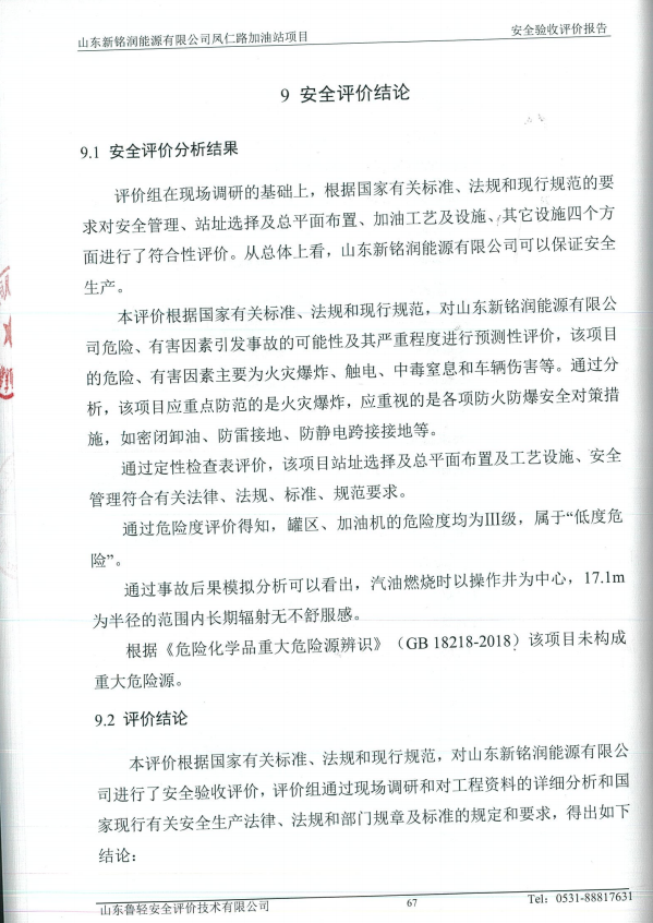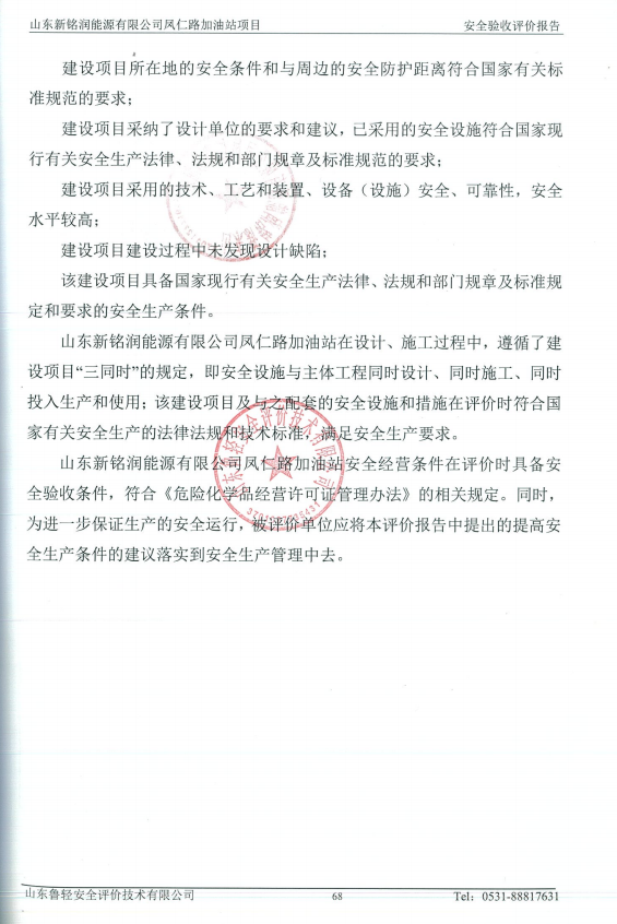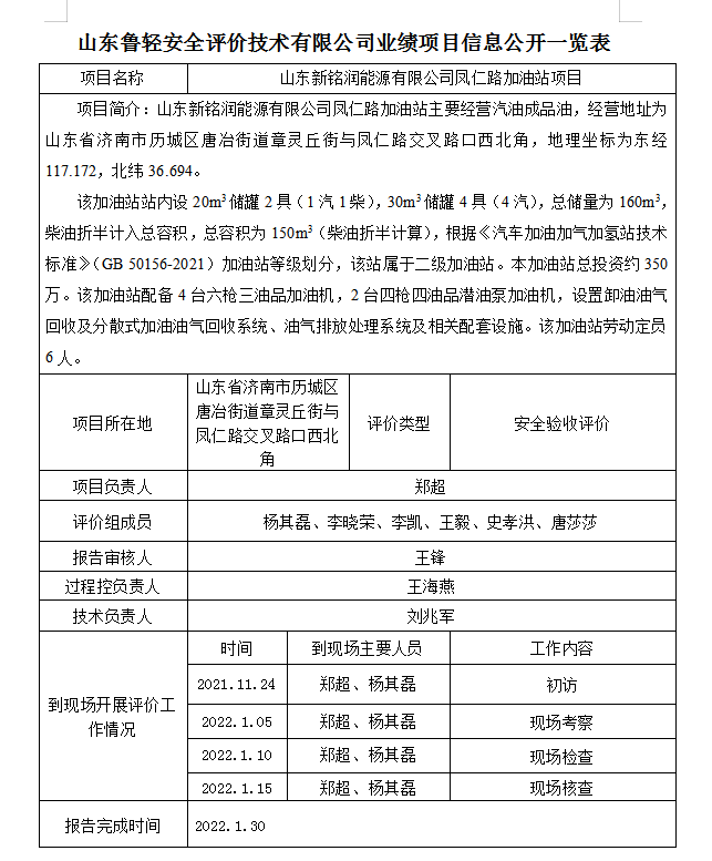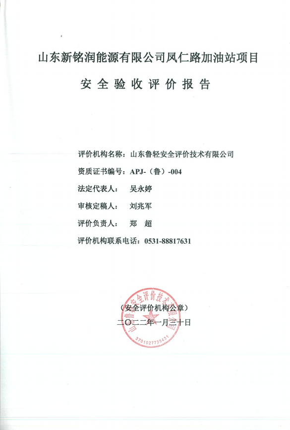 山東新銘潤能源有限公司鳳仁路加油站項目